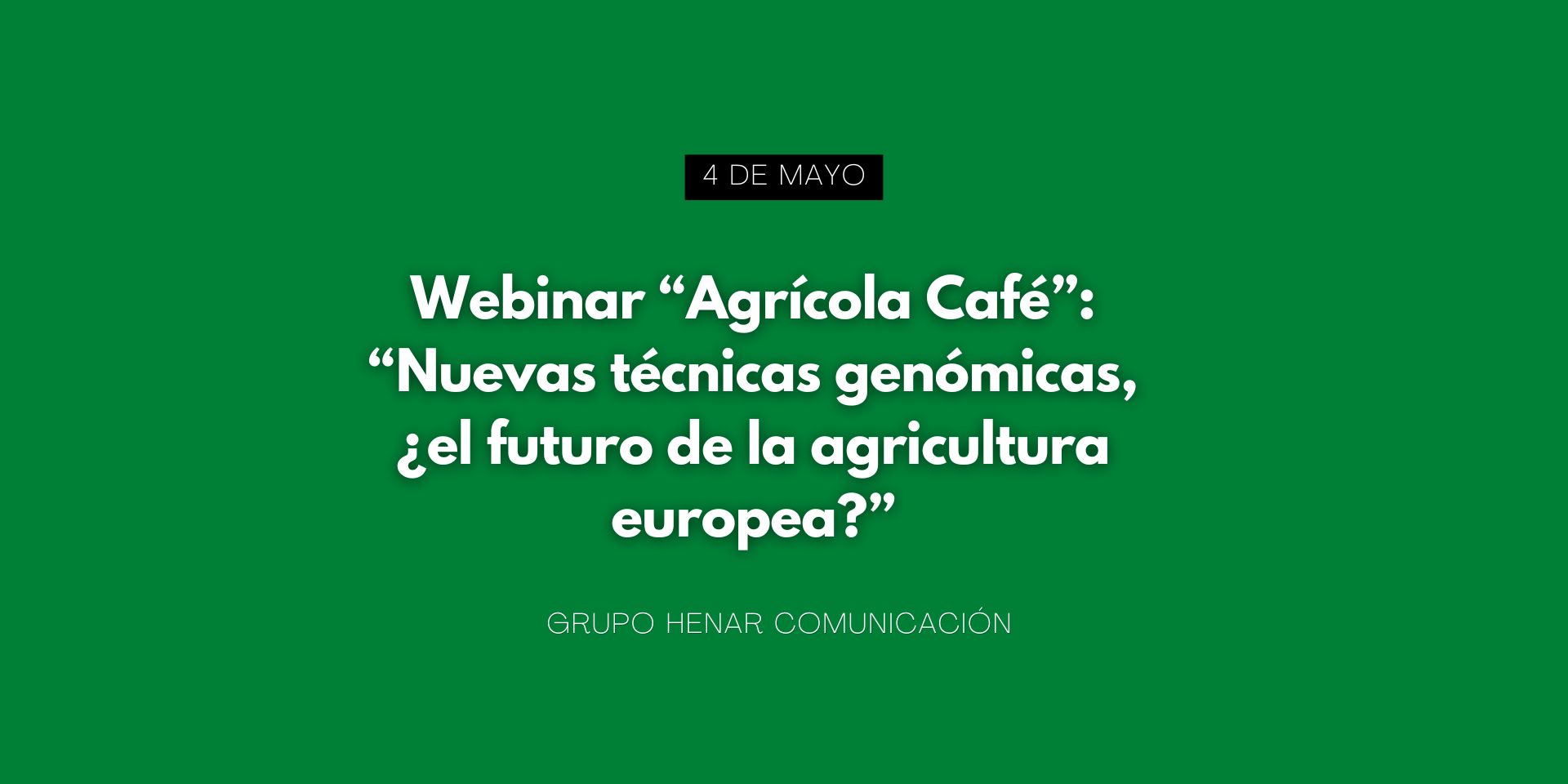 El nuevo webinar “Agrícola Café”, titulado “Nuevas técnicas genómicas, ¿el futuro de la agricultura europea?”, se celebrará el lunes 4 de mayo a las 16:30 horas.